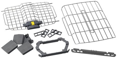 На фронтальних дверцятах встановлено пружинний замок, що повністю унеможливлює випадкове відкриття. Двері можна встановлювати з правим або лівим відкриттям. Зверху і знизу решіткі є широкі пази, які призначені для надання додаткової жорсткості та безпеки конструкції.